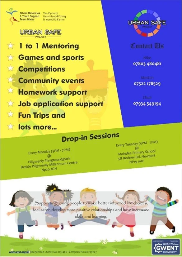 Funded by Gwent Police and Crime Commissioner’s Police Community Fund, our Urban Safe Project (USP) supports ethnic minority young people in Newport aged 11-25, by providing safe, culturally accessible spaces for them to access trusted workers to speak to and positive activities to take part in. USP builds on our existing work in Newport established over the last 6 years.